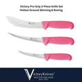 Victory Pro Grip Hollow Ground Skinning & Boning Knife Set, 3 PINK Knives