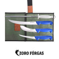 Zoro Forgas 4 Piece Farm Butcher Knife Set with 12" Sharpening Steel & Canvas Wrap