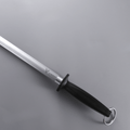 J.West 12" sharpening steel with 30cm steel rod and polypropylene handle features durability, heat resistance, and convenient hanging ring for easy sharpening and storage.