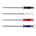 J.West 12" sharpening steel with 30cm steel rod and polypropylene handle features durability, heat resistance, and convenient hanging ring for easy sharpening and storage.