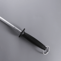 J.West 12" sharpening steel with 30cm steel rod and polypropylene handle features durability, heat resistance, and convenient hanging ring for easy sharpening and storage.